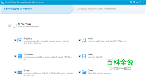 启动数据恢复软件,然后选择要恢复的文件类型。然后点击“下一步”按钮。