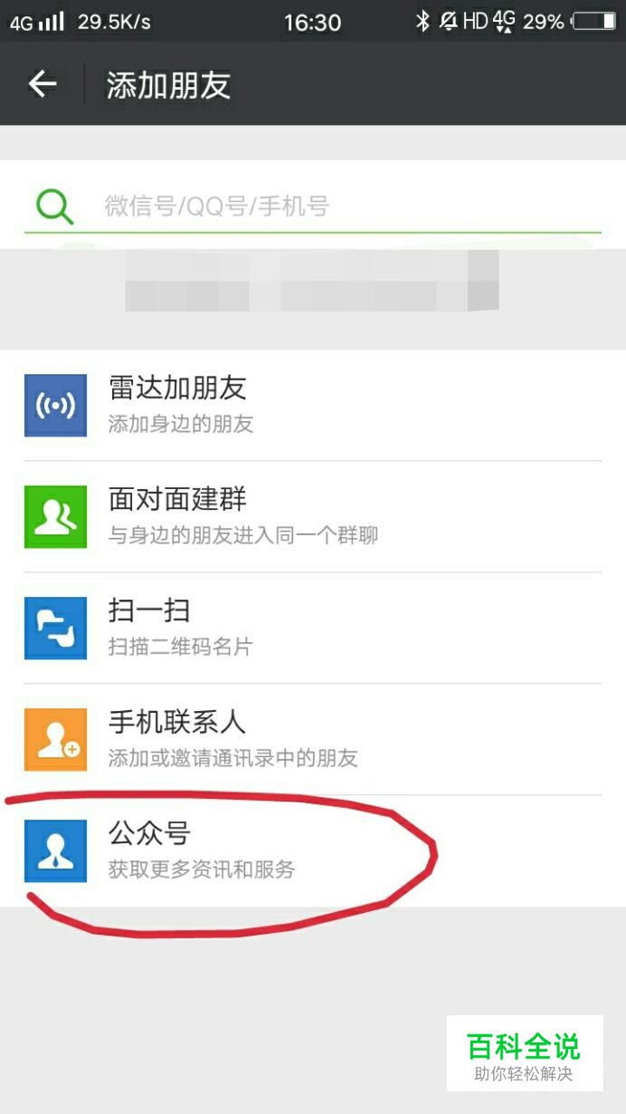 首先打开微信,点击右上角的添加,点击添加朋友,然后再点击公众号。