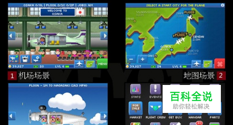 此游戏主要是通过地图——机场——飞行三个场景之间的循环切换,再使用各项数据列表菜单(装载列表、飞机信息等等)进行观察、购买、升级等操作,反复实现将乘客及货物运最优化地送到指定目的地赚取利润,最终发展扩大航空商业帝国的目的。