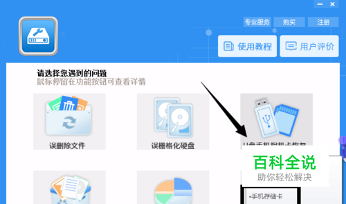 安装完成后,打开软件,在首页提供的功能中选择“U盘手机相机卡恢复”功能;