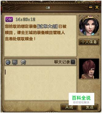 当赎回凭证对应的装备被赎回时,你将会收到GM信息如下: