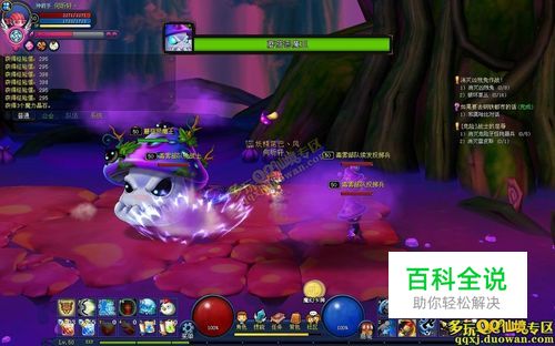 打完两批小怪后,会召唤出蘑菇恶毒王。进入毒蘑菇地带后,注意不要掉到边上的紫色深潭里,如果掉下去了,会持续掉血。
