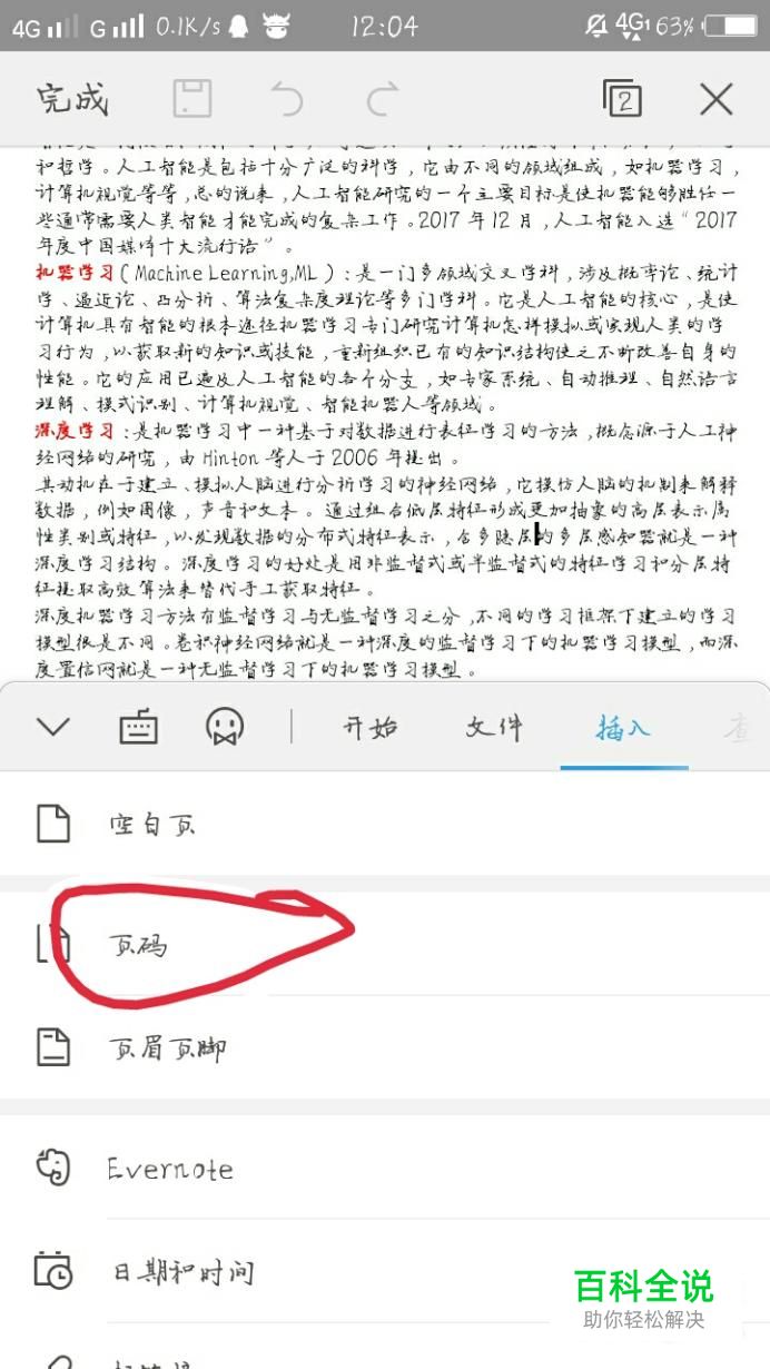 然后选择“插入”选项,再往下翻,找到“页码”选项并点击选择。