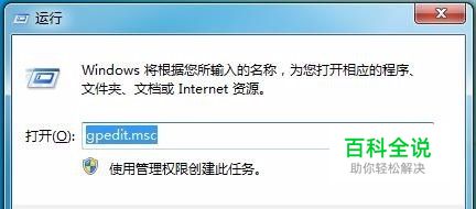 1、首先打开组策略编辑器,按下Win+R键打开运行,输入gpedit.msc,点击确定;