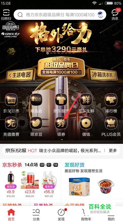 首先第一步打开京东首页,点击下方的“领劵”。