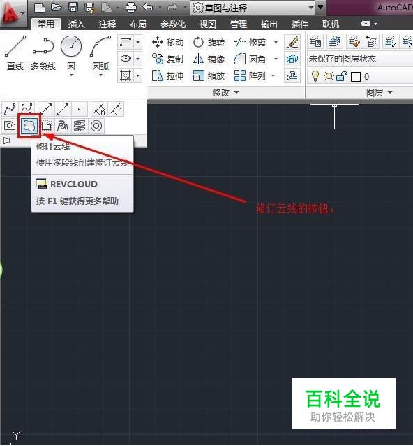 绘制云线,我们可一直直接修改云线命令,也可以通过绘图进行设置。点击【绘图】-【修订云线】进行操作,另一种输入快捷键revcloud回车执行命令。