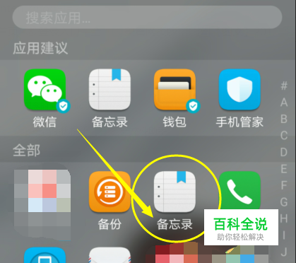 打开手机桌面上的备忘录,这个不用安装。一般的手机都带有这个软件功能。