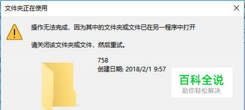 操作无法完成,因为其中的文件夹已在另一程序中打开,请关闭该文件或文件夹,然后重试。”,遇到这种情况我们应该怎么办呢?请看下文。