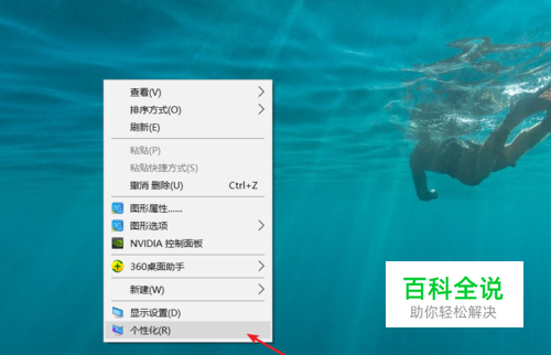 如图,在电脑桌面的空白处,右击鼠标,在弹出选项卡中点击“个性化”进入设置页面。
