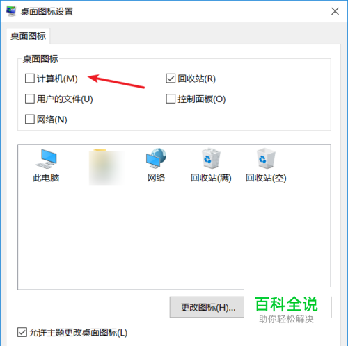 在桌面图标设置界面的桌面图标选项内,我们可以看到计算机选项。