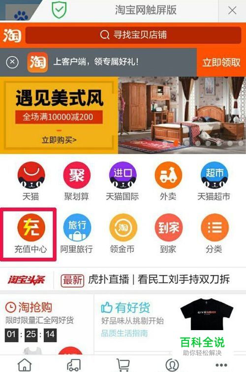 打开手机淘宝APP或者淘宝手机版页面,由于手机上没安装客户端所以我用淘宝网触屏版登录的,登陆后找到充值中心,图中已经标出。