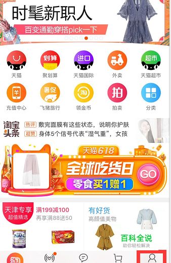 找到【我的淘宝】点进去(在右下角,我用红框做标记的地方)。