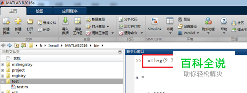 第一步首先介绍自然数对数log(x),电脑中打开matlab之后,在命令行窗口输入a=log(2.7183),按回车键后,可以看到结果近似为1,e的值近似为2.7183,如下图所示: