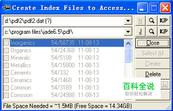 选择需要建立索引的PDF2子库,PDF2中共有26万多张卡片,这些卡片按类保存在 不同的子库中,最简单的办法就是“SelectAll”,因为JADE建立的只是索引,而不是完全 复制,所以即使你选择了全部,也多占不了多少硬盘空间。