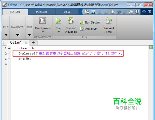 同时按住Ctrl+N键新建M文件,在其中编写程序读取文档中所需的数据,此处可参考笔者另一篇关于如何读取Excel文件数据的经验。然后对数据进行所需处理。