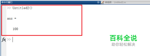 第二步在命令行窗口中输入“Untitled2()”,调用主函数,可以得到返回的sum值结果为100,这里需要注意的是主函数可以调用子函数,子函数里面不能调用主函数,如下图所示: