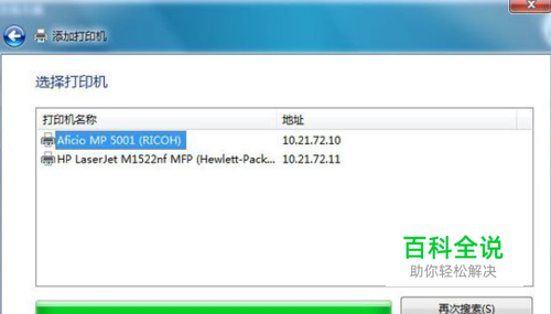 选择完之后系统会自动的扫描整个局域网,寻找到已经联网的打印机,在此之前你需要看好离你最近的打印机型号,方便取打印好的文件。