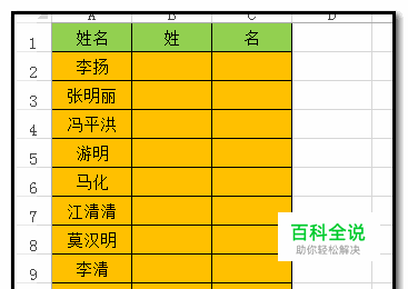 excel 表格里姓名怎么把姓和名字分开分为2列?