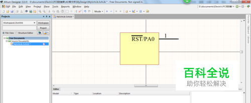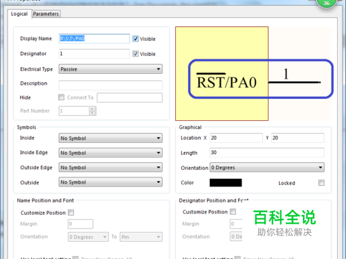第七步:点击“OK”,回到元件设计界面,可以看到R字母上多了一条上划线了,依照这个方法,即想给那个字母上加横线就在它后面加一个反斜杠“\”。