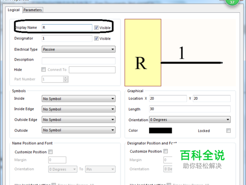 第五步:给新添加的元件引脚命名,这里我们先看看如何在R上面添加一条横向,双击刚刚添加的引脚,软件会弹出“Pin Progerties”对话框,选择“Logical”选项卡,在其中输入R。