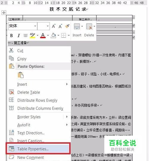 这个时候,至少90%的文档问题已经解决了。 什么?你手上的表格还是不能跨页?现在让我们继续调整,这是最后的方法了。 选中表格,右键来到表格属性,选中“表格”插页。
