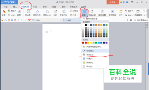打开软件,新建文档,选择 页面布局—— 背景—— 渐变