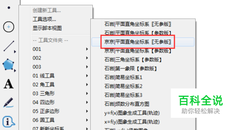 需要跟大家说明一下,这里要使用几何画板自定义工具,还是迷你坐标系,选择无参版的直角坐标系。