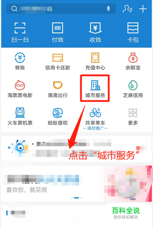 输入支付宝账号和密码登录成功后,在支付宝的主界面上,找到“城市服务”选项并点击它。