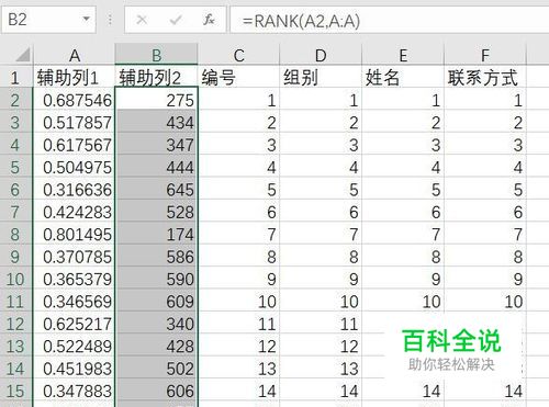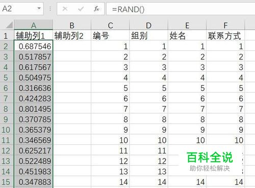 在左上角的名称框中,输入A2:A953,按Enter键,将A2:A953单元格选中,输入=RAND(),按Ctrl+Enter组合键结束,快速向A2:A953单元格中输入随机数(随机数的重复机率极低);