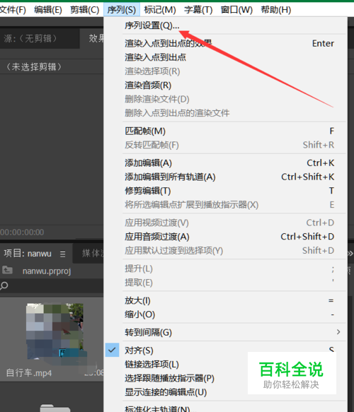 拖入素材或者制作完后,调整画布,注意premiere里不像ps里那样方便。 上方序列-序列设置