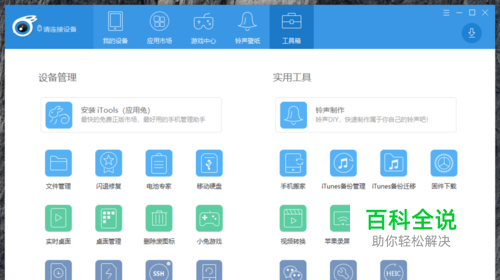 打开电脑,重网上下载并安装好itoos,安装好后,这是我们打开itoos点击上方的工具箱找到我们需要的投屏助手。