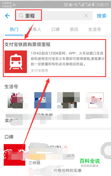 弹出的搜索框中输入里程,点击搜索查看到多的第一个进去