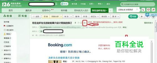 打开邮件,在这里,我打开的是booking发给我的一份酒店订单的邮件。里面有酒店地址,联系方式,入住时间等详情,我希望把这个有用的邮件存成电子版,以便我出行时方便查看。