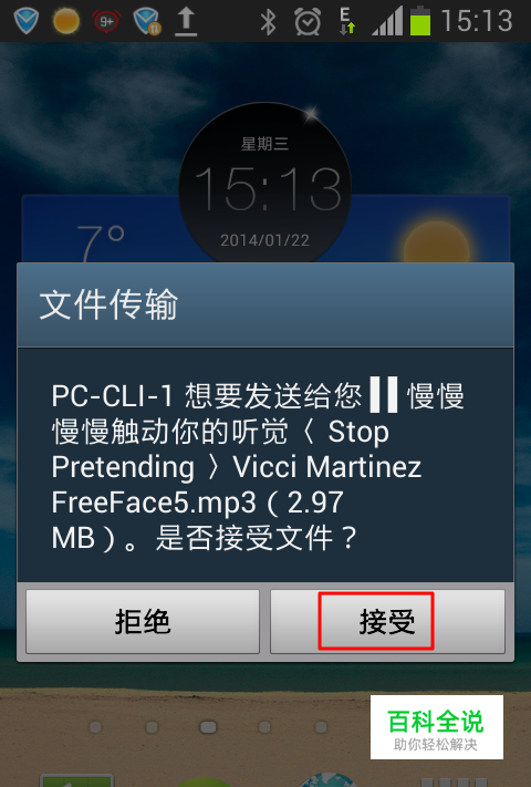 然后可以搜到手机B。点确认发送。 在手机B,会有提示配对,或直接是一个接受的界面。这时点接受就行了。