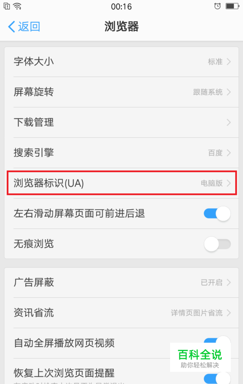手机通过浏览器登录到百度网盘下载:这时首先点击手机的设置——浏览器——浏览器标识(UA),点击展开后选择:电脑版。接下来输入百度网盘地址打开并登录(也可以在搜索栏那里输入:百度网盘,搜索后,点击百度网盘官网打开登录)