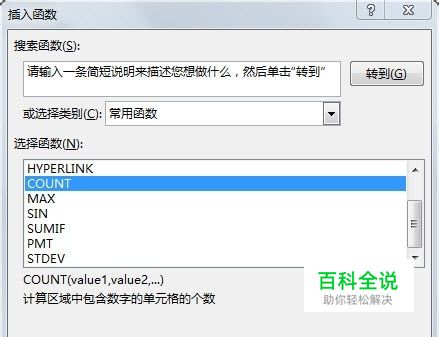 COUNT函数是用于计算参数列表中的数字项个数的函数,函数COUNT在计数时,将把数字、空值、逻辑值、日期或以文字代表的数计算进去;但是错误值或其他无法转化成数字的文字则被忽略。 语法:COUNT(value1,value2, ...) (Value1, value2, ... 是包含或引用各种类型数据的参数)