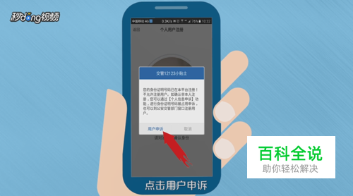 首先打开12123app,进入注册界面,输入身份证等信息后,此时弹出消息框,提示身份证已经被注册,需要进入到用户信息申诉中,点击用户申诉。