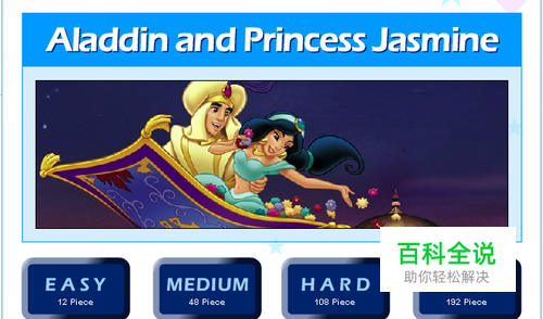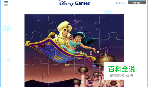 阿拉丁还有公主的拼图,有12、48、108、192块四种模式可选。192块拼图,敢不敢挑战一下。游戏加载完毕选择难度 - 再点击shuffle即可开始游戏,鼠标点击拖动碎图进行拼图,点击右上角的modes可选择不同难度哦。在限定时间内,成功地完成拼图吧!
