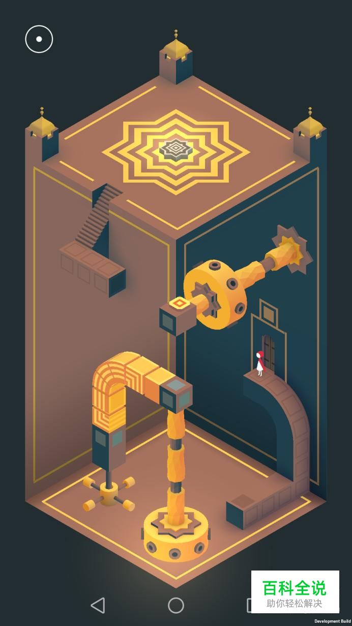 把上面的机关旋转180度使之与到终点的路相通,主角走到终点,用两只手指在屏幕滑动完成花纹,游戏通关。