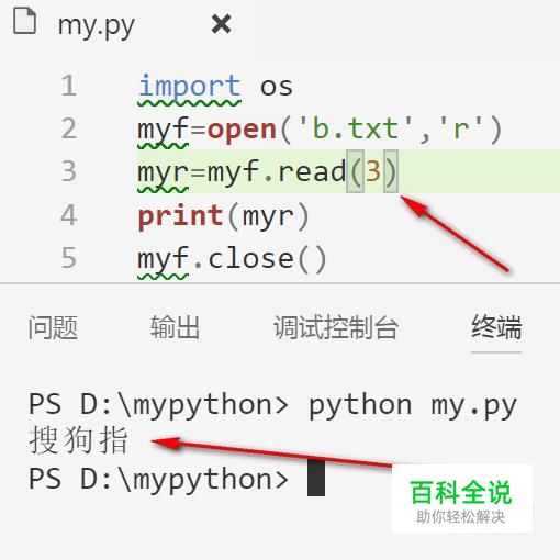 而如果我们在之前的read方法里面加入一个数字参数,保存,然后重新运行my.py,就会发现只读取了3个字符。这就是read()有参数和没参数的区别,通过参数设置,我们可以获取到固定长度的字符。