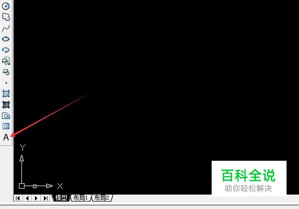 首先打开CAD的绘图界面后,点击左侧工具栏中的多行文字图标(该图标为字母A)。