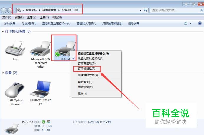 找到想要共享的打印机,右键选择打印机属性,如下图所示。