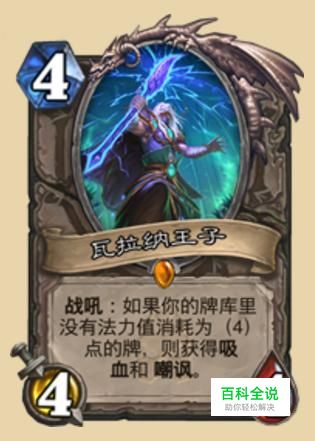 瓦拉纳王子,盗贼的4费在盗墓匪贼退环境以后没有太适合的生物,4王子刚好填补这个空缺,而且还能回血也比较适合我们这个卖脸的职业。