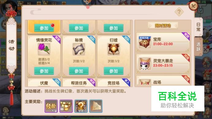 整个活动会消耗一定的时间,在进度条中即可进行查看,不要进行走动,不然会中断活动。