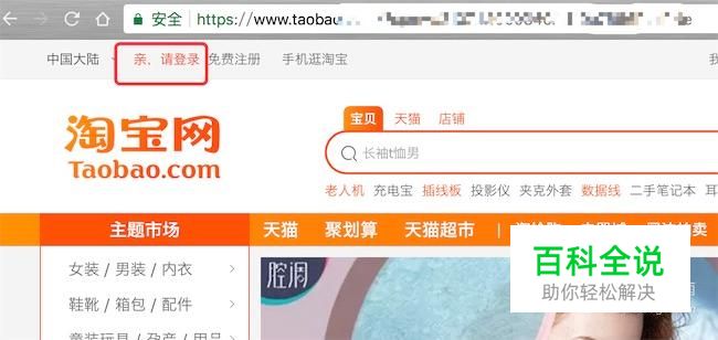 打开淘宝官方网站,点击导航栏上的‘登录’。