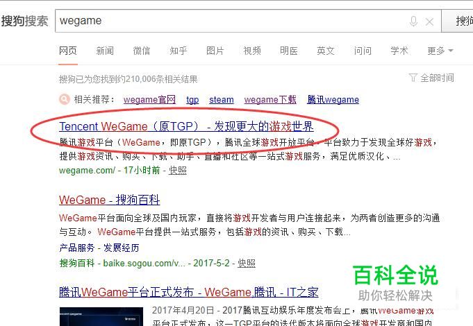 首先我们需要下载wegame,从而获取枪火游侠的激活码,首先打开搜狗输入关键词,并进行下载(如图所示)。