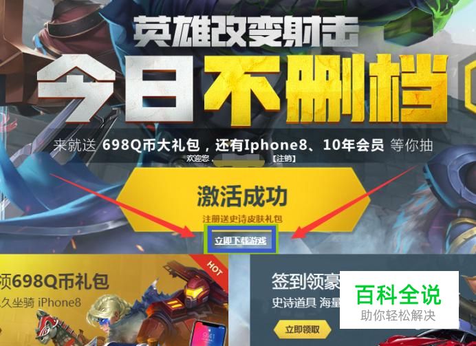 进入官网后并登陆账号后,在激活成功下面,有一行小字,下载游戏就在那里,非常的小,不注意看是看不到的,小编也不知道为什么那么小(如图所示)。