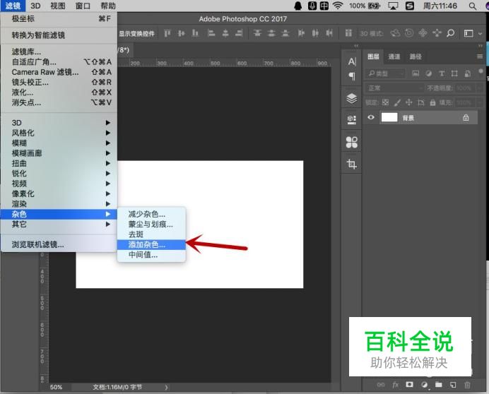 点选背景图层,选择“滤镜-杂色-添加杂色”