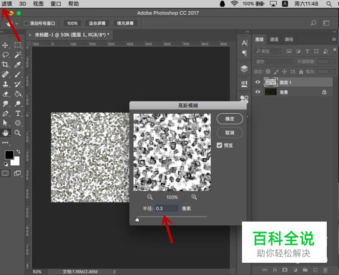 高斯模糊半径为3.3px,点击“确定”