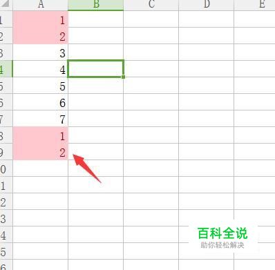 首先我们来看如何找到重复值,为了给大家做演示我们首先打开一个excel然后在第一列也就是A列输入几个重复数字如下图所示: